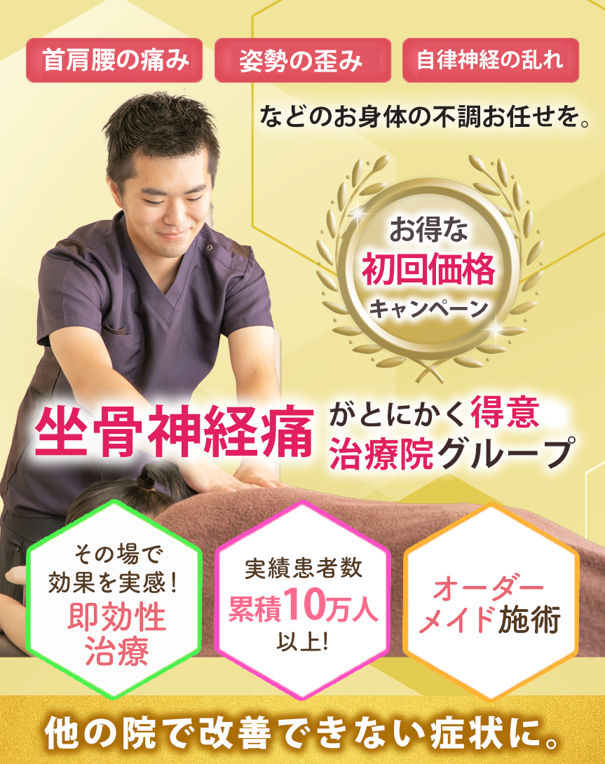 骨格のバランスが崩れることによって神経が圧迫され、坐骨神経痛の症状が生じます。
